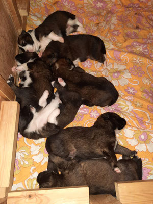 Es sind 4 Hündinnen und 3 Rüden. Wir sind überglücklich.